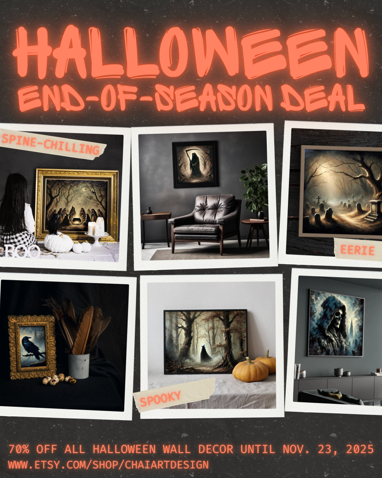🎃 🏷️ End-of-season spooky deal --> 70% off all Halloween wall decor!